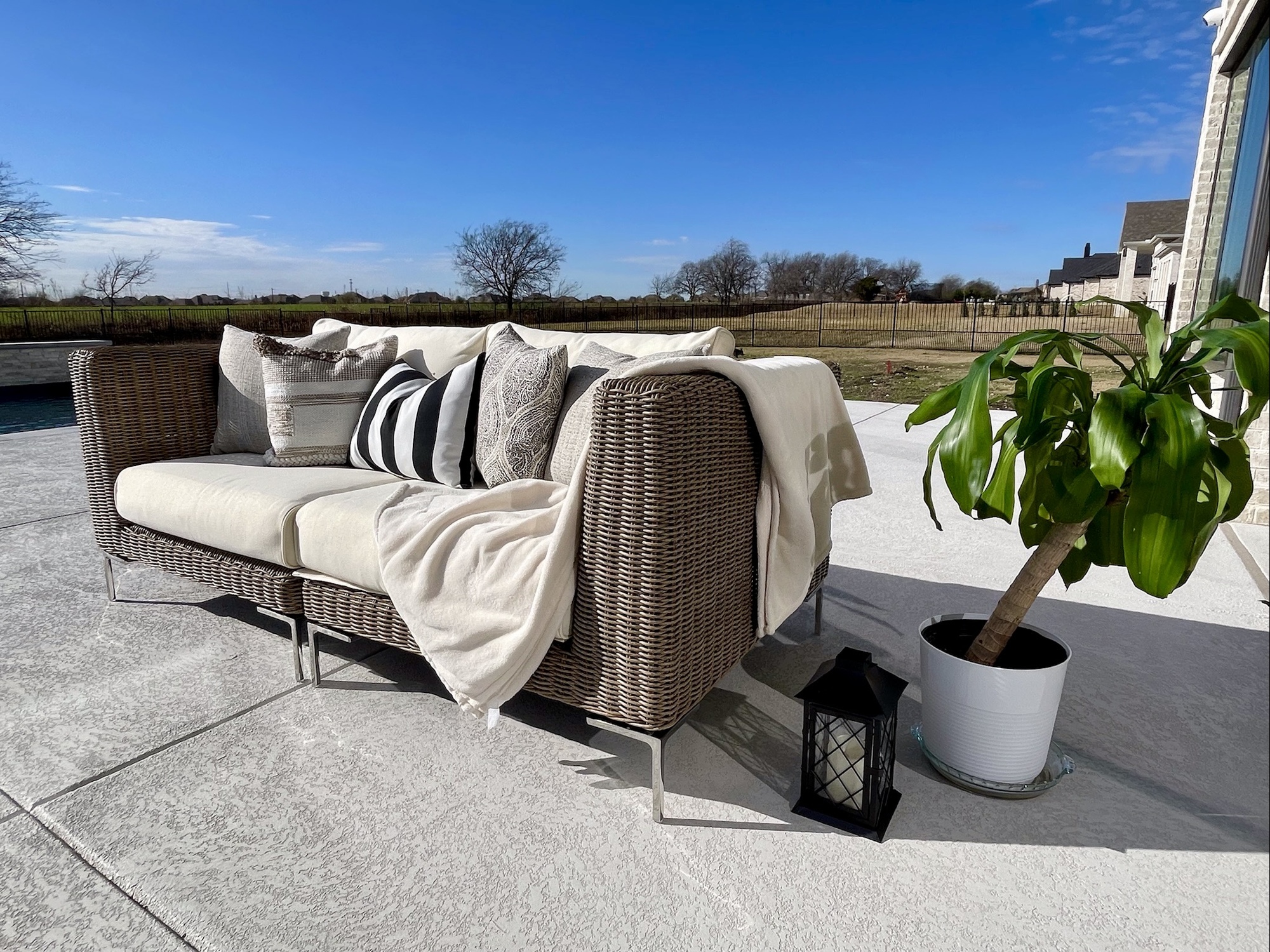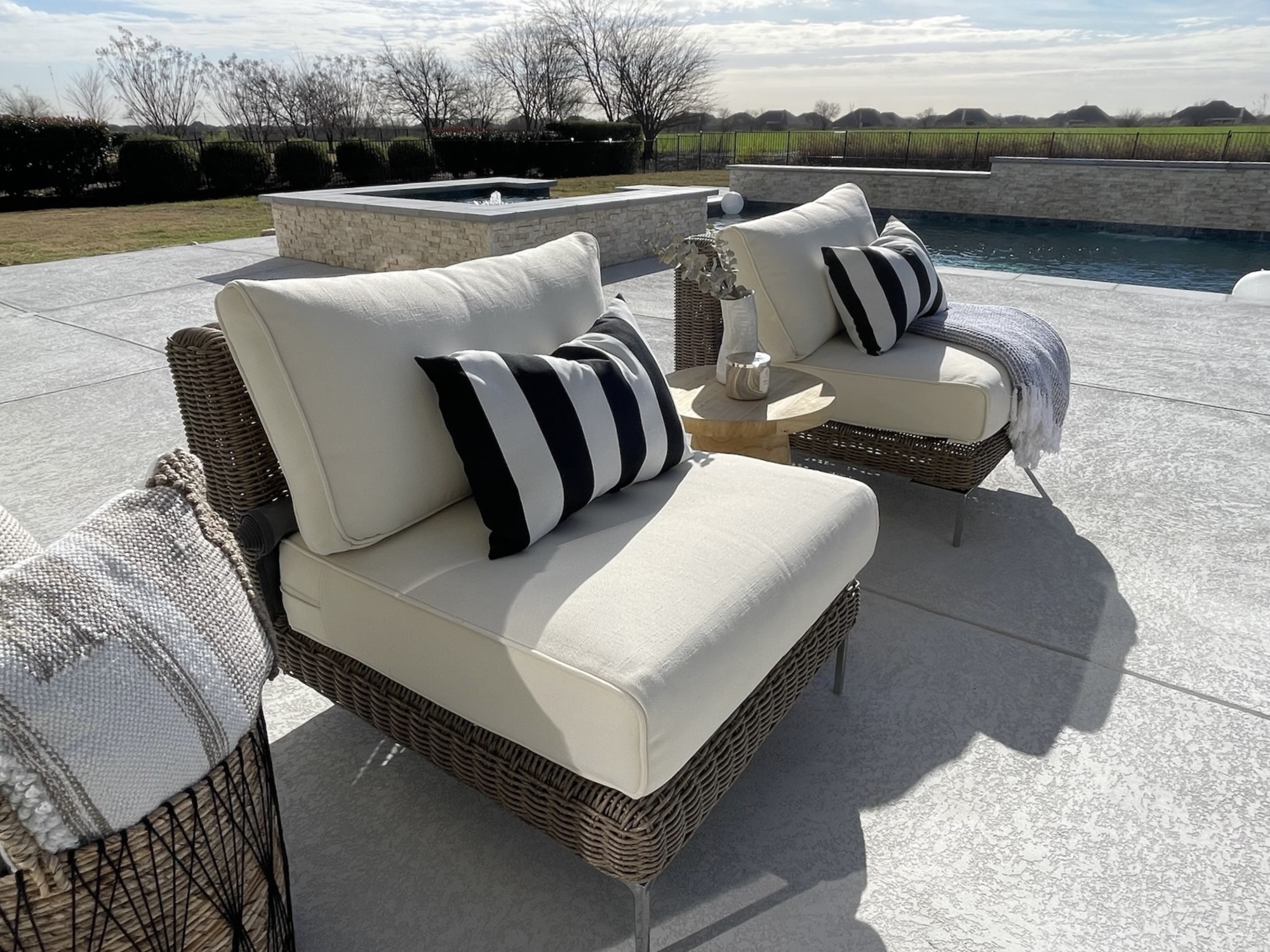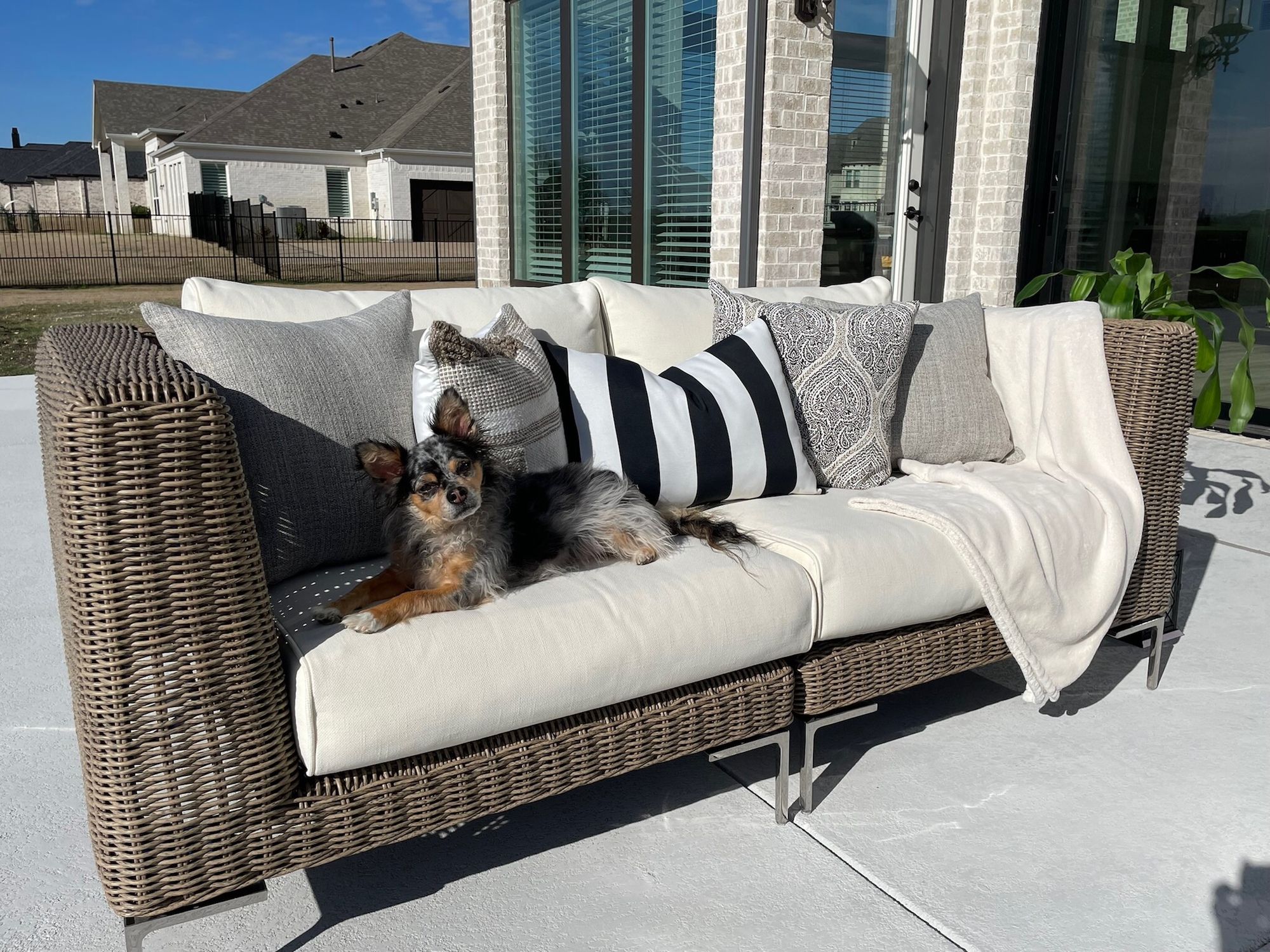 I live in Texas with my beautiful wife, two lovely kids, and small pomchi. We are avid outdoor people who love to swim, play sports, and travel. We just welcomed our daughter to our family and are loving spending time with her and enjoying the Texas weather. We also recently moved into a new home and are in the process of transforming the backyard into our outdoor oasis, similar to that of a Mexican resort. We recently had our pool and patio built and are beginning the landscaping. The Wicker 3-Seat Sofa and Armless Chairs fit perfectly into our evolving vision!