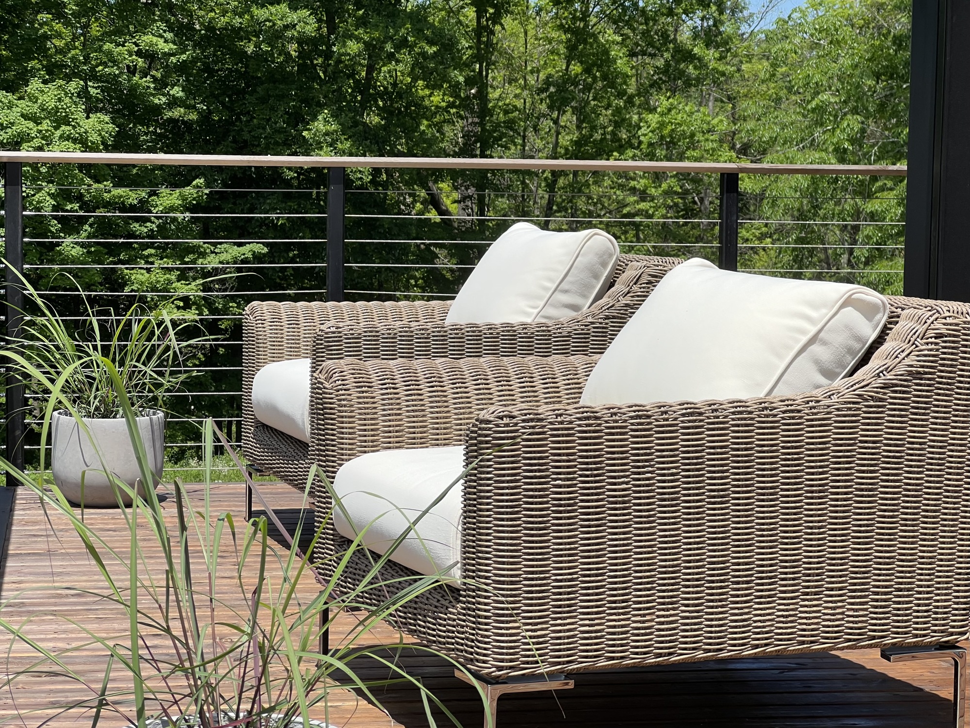 I’m a professional baker and eater, living in upstate New York — though formerly a city dweller. We are on a beautiful farm with acreage in many directions. Lots of wonderful neighbors and interesting animals. Just recently, I redid all of my landscaping so outdoor living feels complete—along with our Brown Wicker Armchairs.